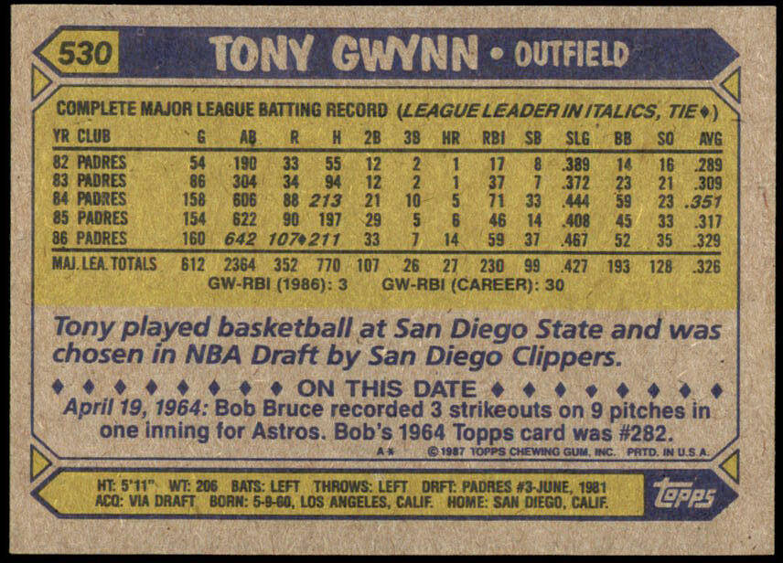 1987 Topps Tony Gwynn (#530)