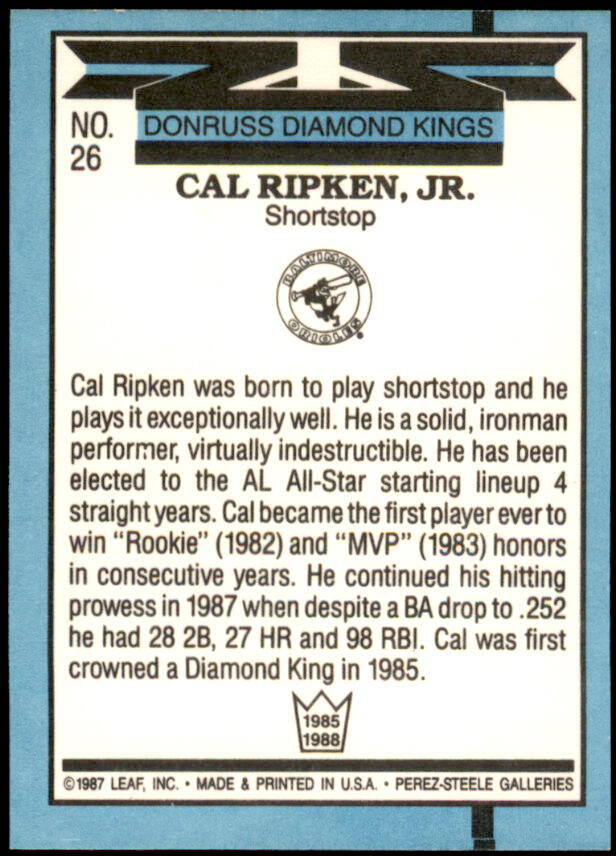 1988 Donruss Cal Ripken Jr. Diamond Kings (#26)