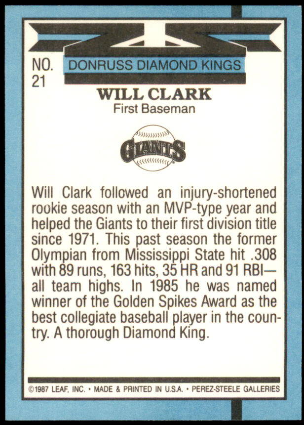 1988 Donruss Will Clark Diamond Kings (#21)