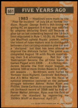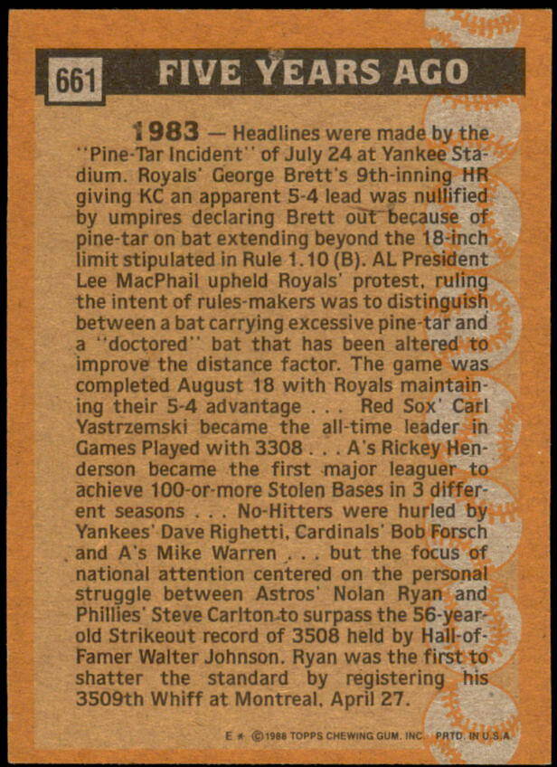 1988 Topps Nolan Ryan Turn Back The Clock (#661)