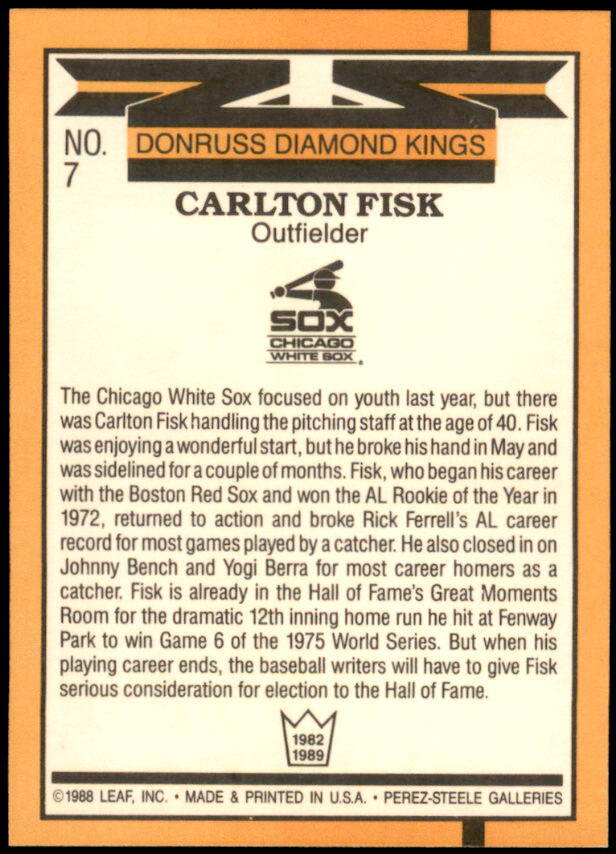 1989 Donruss Carlton Fisk Diamond Kings (#7)