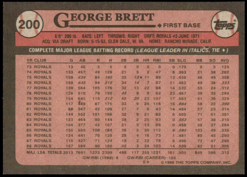 1989 Topps George Brett (#200)