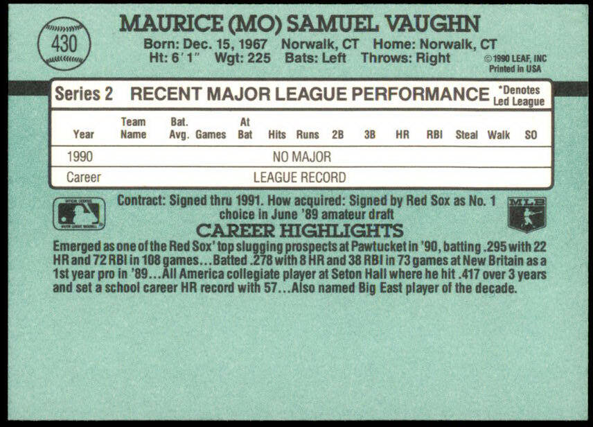 1991 Donruss Mo Vaughn Rated Rookie (#430)