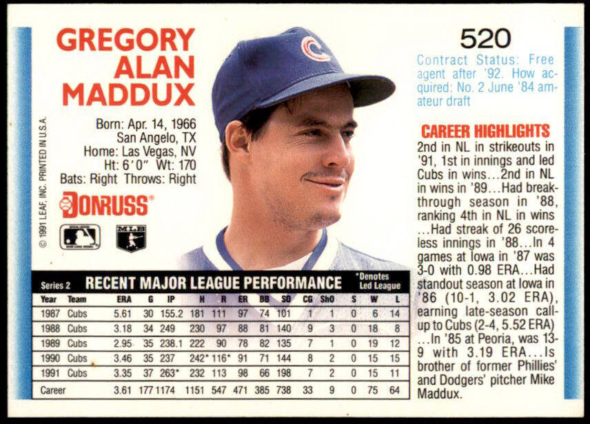 1992 Donruss Greg Maddux (#520)