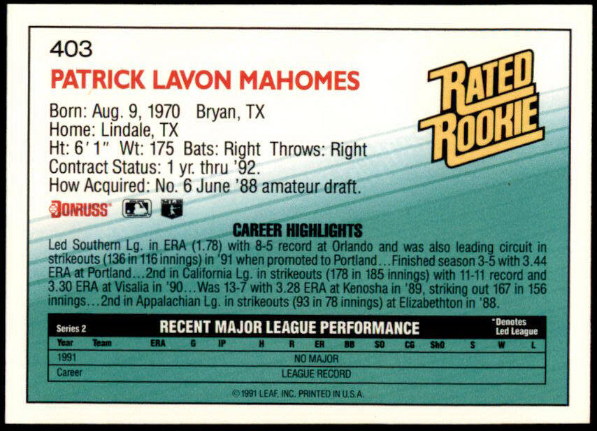 1992 Donruss Pat Mahomes Rated Rookie (#403)