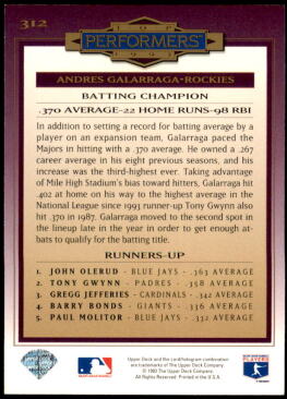 1994 Upper Deck Collector's Choice Andres Galarraga Top Performers Silver Foil Signature (#312)