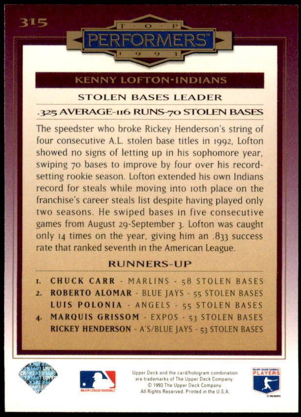 1994 Upper Deck Collector's Choice Kenny Lofton Top Performers (#315)