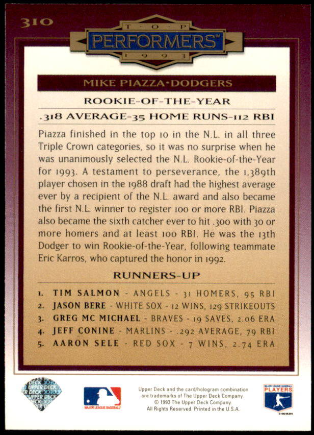 1994 Upper Deck Collector's Choice Mike Piazza Top Performers (#310)