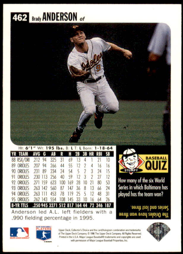 1996 Upper Deck Collector's Choice Brady Anderson Silver Foil Signature (#462)