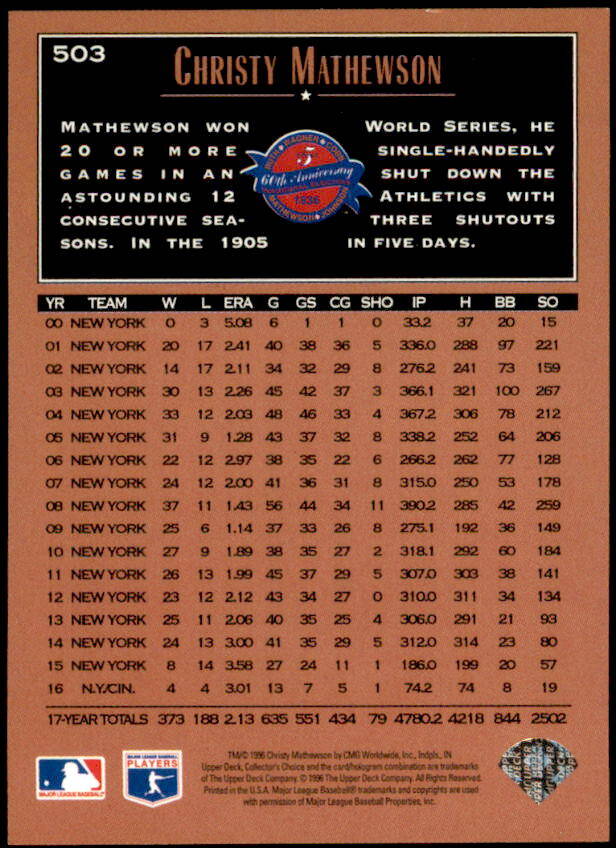 1996 Upper Deck Collector's Choice Christy Mathewson (#503)