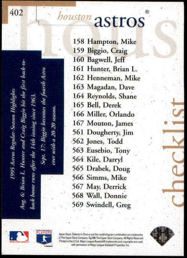 1996 Upper Deck Collector's Choice Jeff Bagwell Team Checklist (#402)