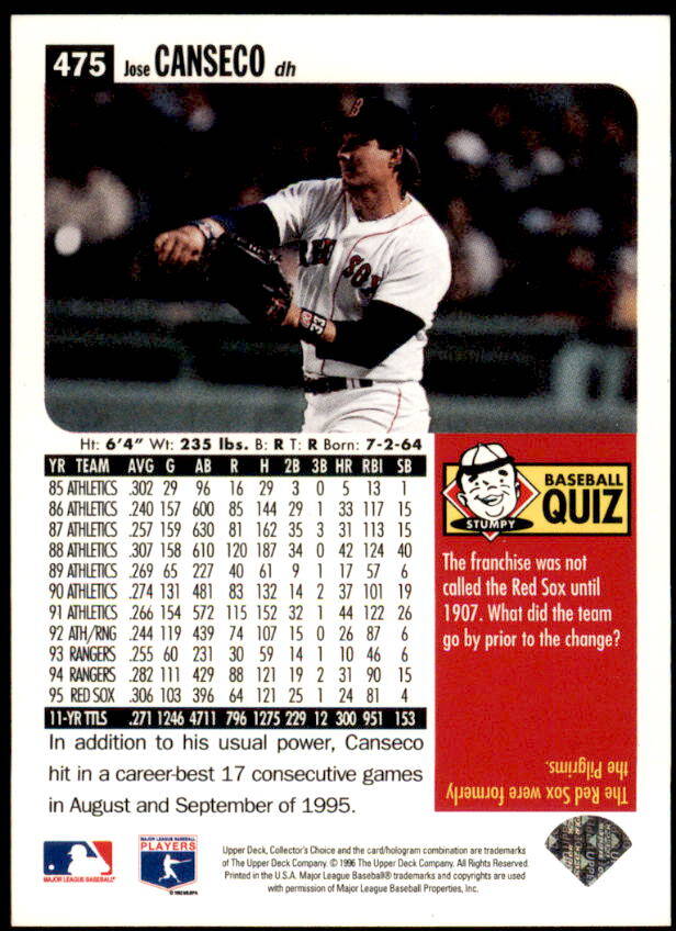 1996 Upper Deck Collector's Choice Jose Canseco (#475)