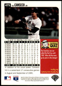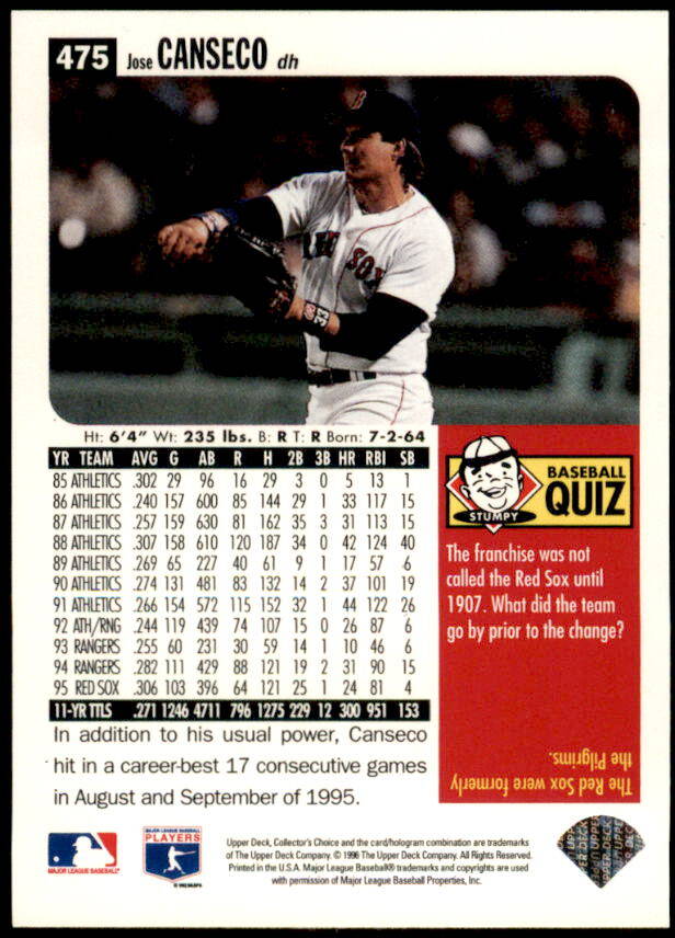 1996 Upper Deck Collector's Choice Jose Canseco Silver Foil Signature (#475)
