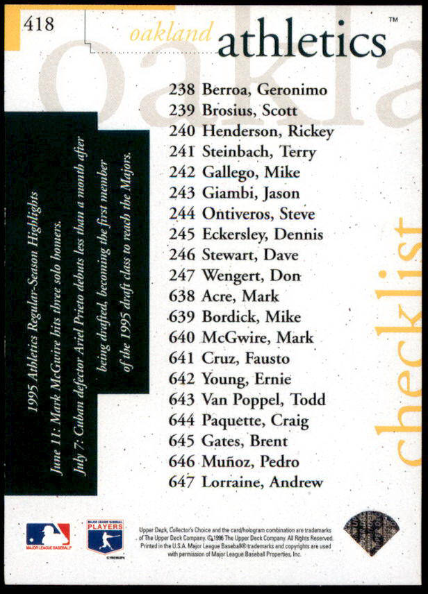1996 Upper Deck Collector's Choice Mark McGwire Team Checklist (#418)