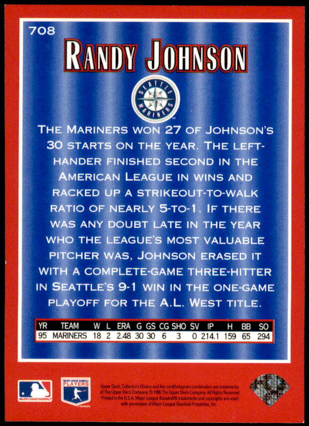 1996 Upper Deck Collector's Choice Randy Johnson Award Winner (#708)