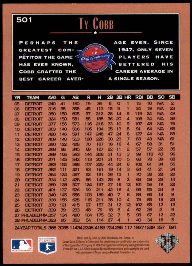 1996 Upper Deck Collector's Choice Ty Cobb First Class (#501)
