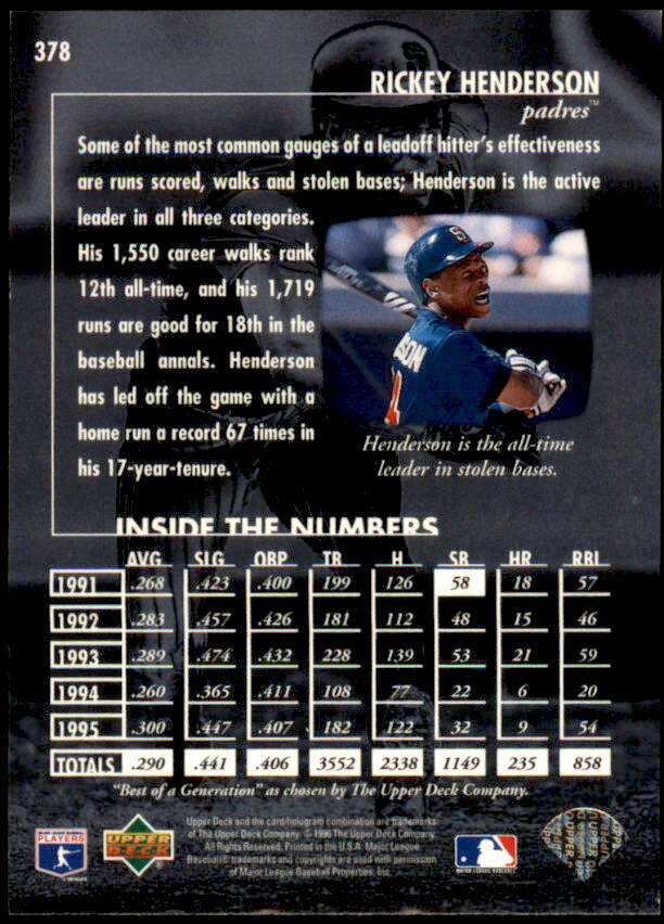1996 Upper Deck Rickey Henderson Best of a Generation (#378)