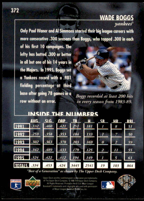 1996 Upper Deck Wade Boggs Best of a Generation (#372)