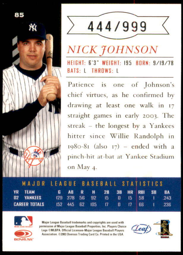 2003 Leaf Limited Nick Johnson 444/999 (#85)
