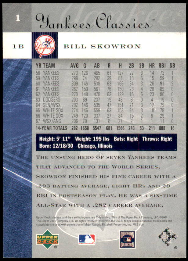 2004 Upper Deck Yankees Classics Bill Skowron (#1)