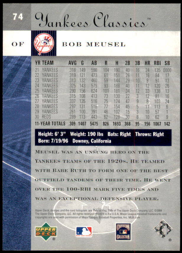 2004 Upper Deck Yankees Classics Bob Meusel (#74)