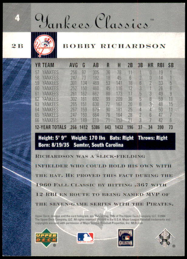 2004 Upper Deck Yankees Classics Bobby Richardson (#4)