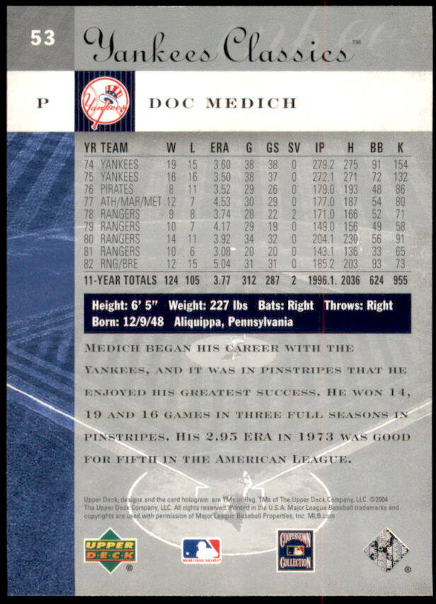 2004 Upper Deck Yankees Classics Doc Medich (#53)
