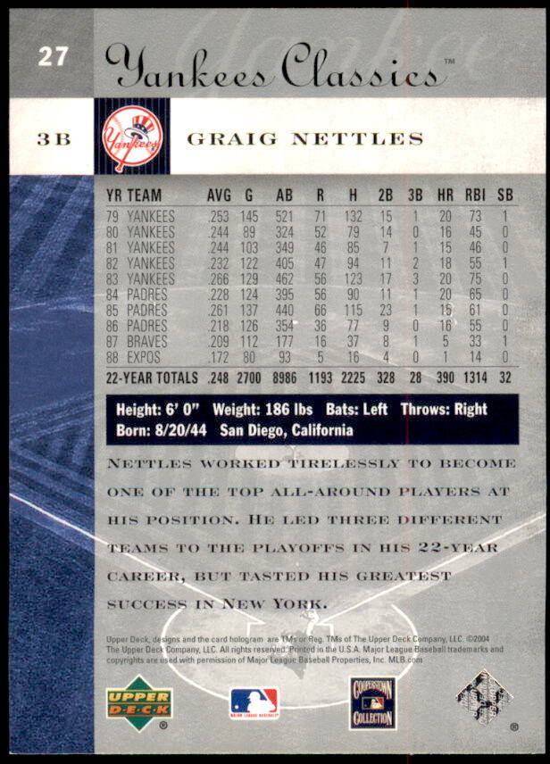 2004 Upper Deck Yankees Classics Graig Nettles (#27)