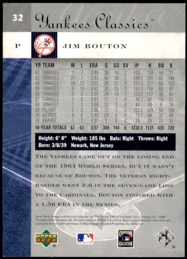 2004 Upper Deck Yankees Classics Jim Bouton Yankees Classics (#32)