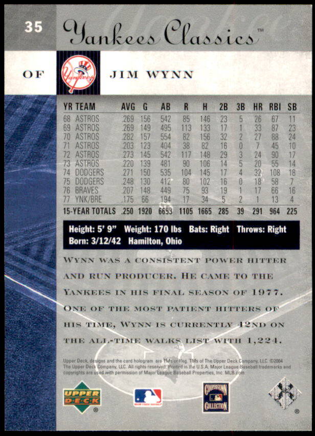 2004 Upper Deck Yankees Classics Jim Wynn (#35)