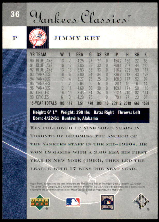 2004 Upper Deck Yankees Classics Jimmy Key Yankees Classics (#36)