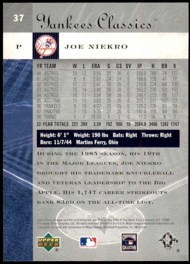 2004 Upper Deck Yankees Classics Joe Niekro (#37)
