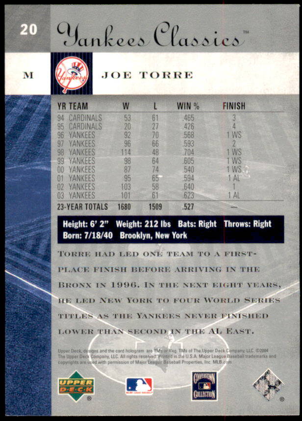 2004 Upper Deck Yankees Classics Joe Torre (#20)