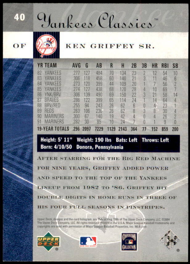 2004 Upper Deck Yankees Classics Ken Griffey Sr. (#40)