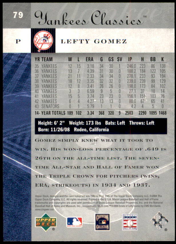 2004 Upper Deck Yankees Classics Lefty Gomez (#79)