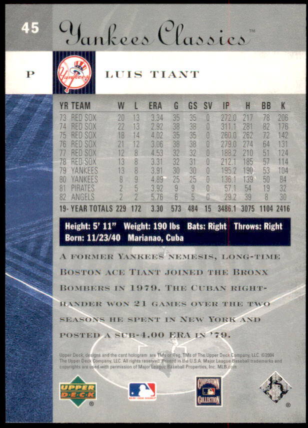 2004 Upper Deck Yankees Classics Luis Tiant (#45)
