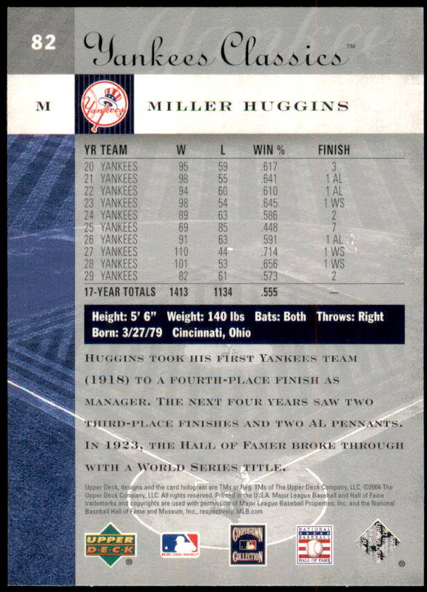 2004 Upper Deck Yankees Classics Miller Huggins (#82)
