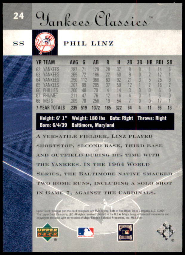 2004 Upper Deck Yankees Classics Phil Linz Yankees Classics (#24)