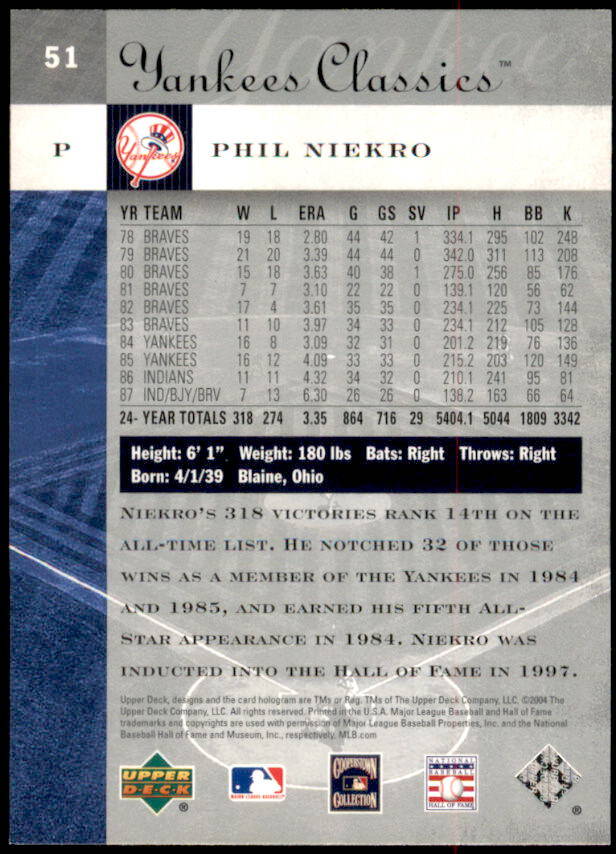 2004 Upper Deck Yankees Classics Phil Niekro (#51)