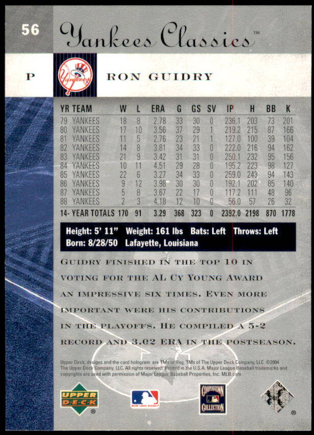 2004 Upper Deck Yankees Classics Ron Guidry (#56)