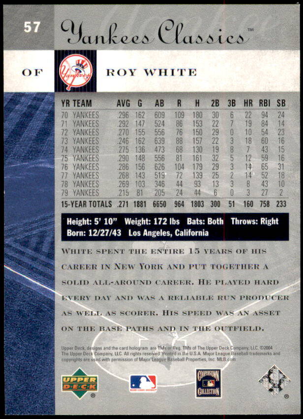 2004 Upper Deck Yankees Classics Roy White (#57)