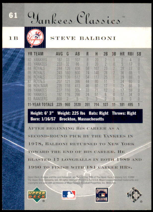 2004 Upper Deck Yankees Classics Steve Balboni (#61)