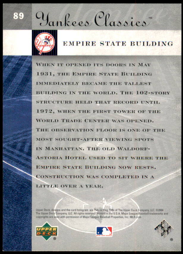 2004 Upper Deck Yankees Classics Team Card Empire State Building (#89)