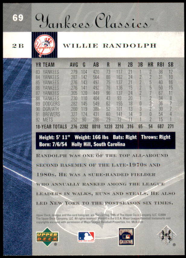 2004 Upper Deck Yankees Classics Willie Randolph (#69)