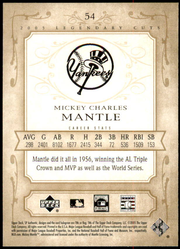 2005 SP Legendary Cuts Mickey Mantle (#54)