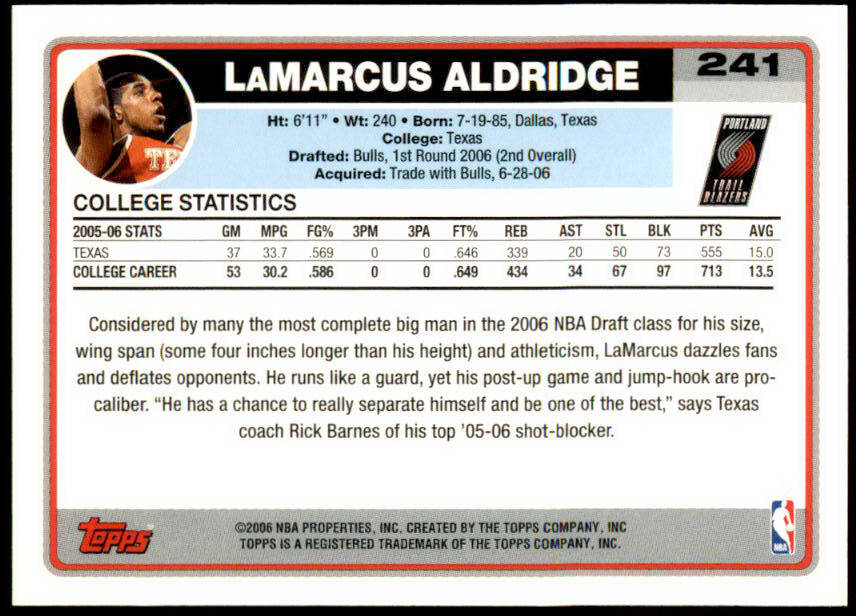 2006 Topps LaMarcus Aldridge Rookie (#241)
