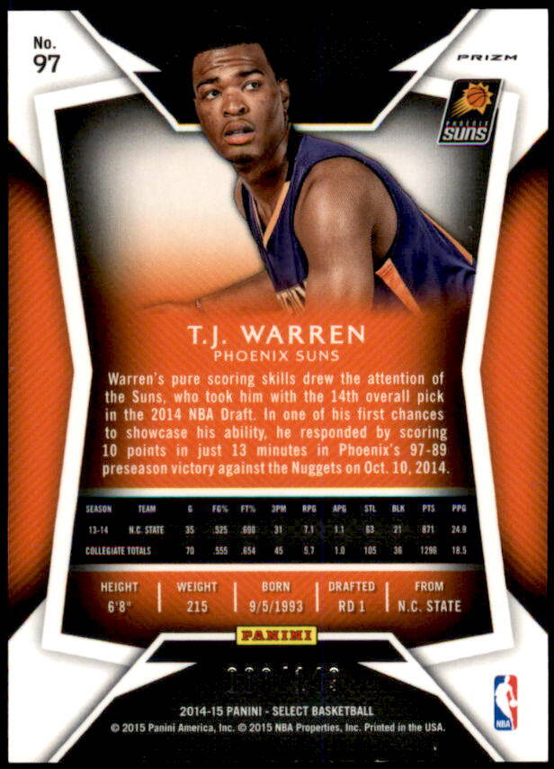 2014 Select T.J. Warren Rookie Red Prizm 88/149 (#97)
