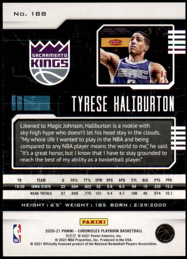 2020 Panini Chronicles Tyrese Haliburton Playbook Rookie Green (#188)