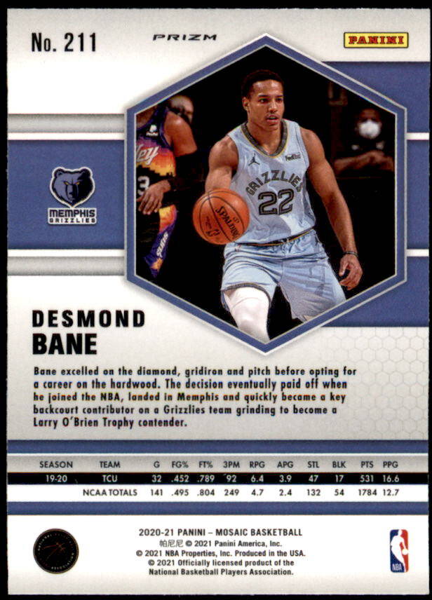 2020 Panini Mosaic Desmond Bane Rookie Reactive Yellow Prizm (#211)