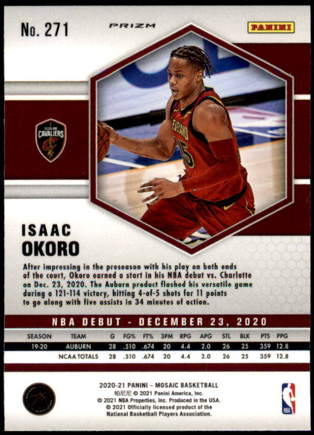 2020 Panini Mosaic Isaac Okoro Rookie Reactive Yellow Prizm (#271)